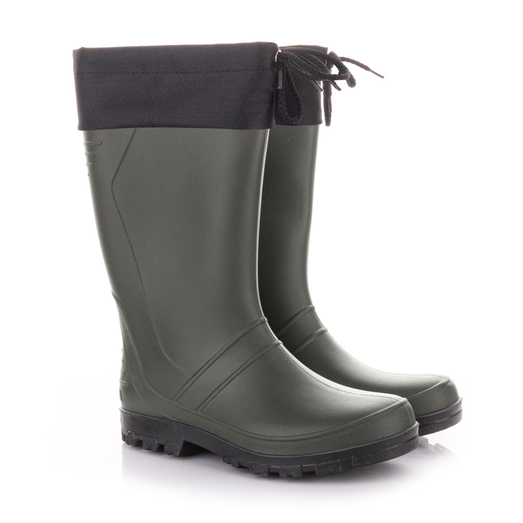- Udogodnienia – kalosze wykończone poliestrowym kołnierzem ze sznurówką.
