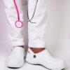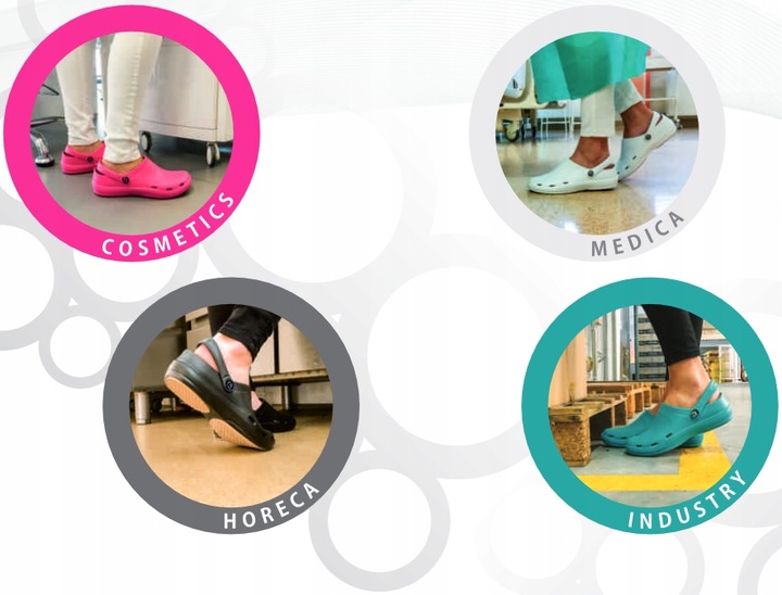 Model dedykowany do (sale operacyjne, stomatologia, laboratoria analityczne, przychodnie specjalistyczne, przemysł spożywczy, gastronomia, kosmetologia, itp.) Obuwie testowane i certyfikowane, spełnia normy CE. Zostało wykonane z pasją oraz wielką starannością o detale, pozwala na wielogodzinną codzienną pracę co było głównym założeniem podczas projektowania.